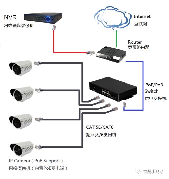 随着技术的发展,现在使用的摄像头很多都支持PoE供电,在网络监控施工中,为了减少布线成本以及更加方便快捷,绝大多数工程商会考虑采用PoE供电。